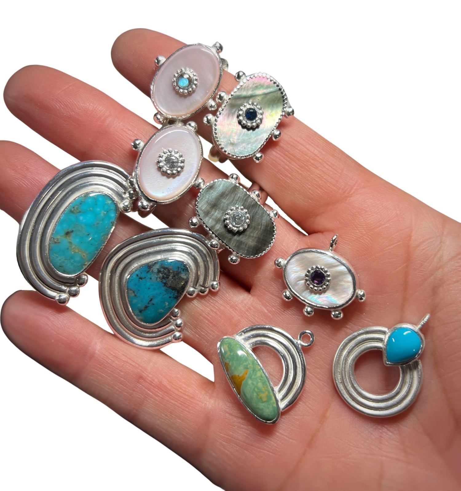 Ahlazua represents Ancestral knowledge attained from the Southeastern Woodlands (Mvskoke Creek-Euchee/ Choctaw) and the Southwestern Deserts (Diné). "These Hand Fabricated works are made with Materials & Techniques that have been used in my Tribes for countless Generations." Materials used to tell stories of trade routes and specific geographic materials important to our people.